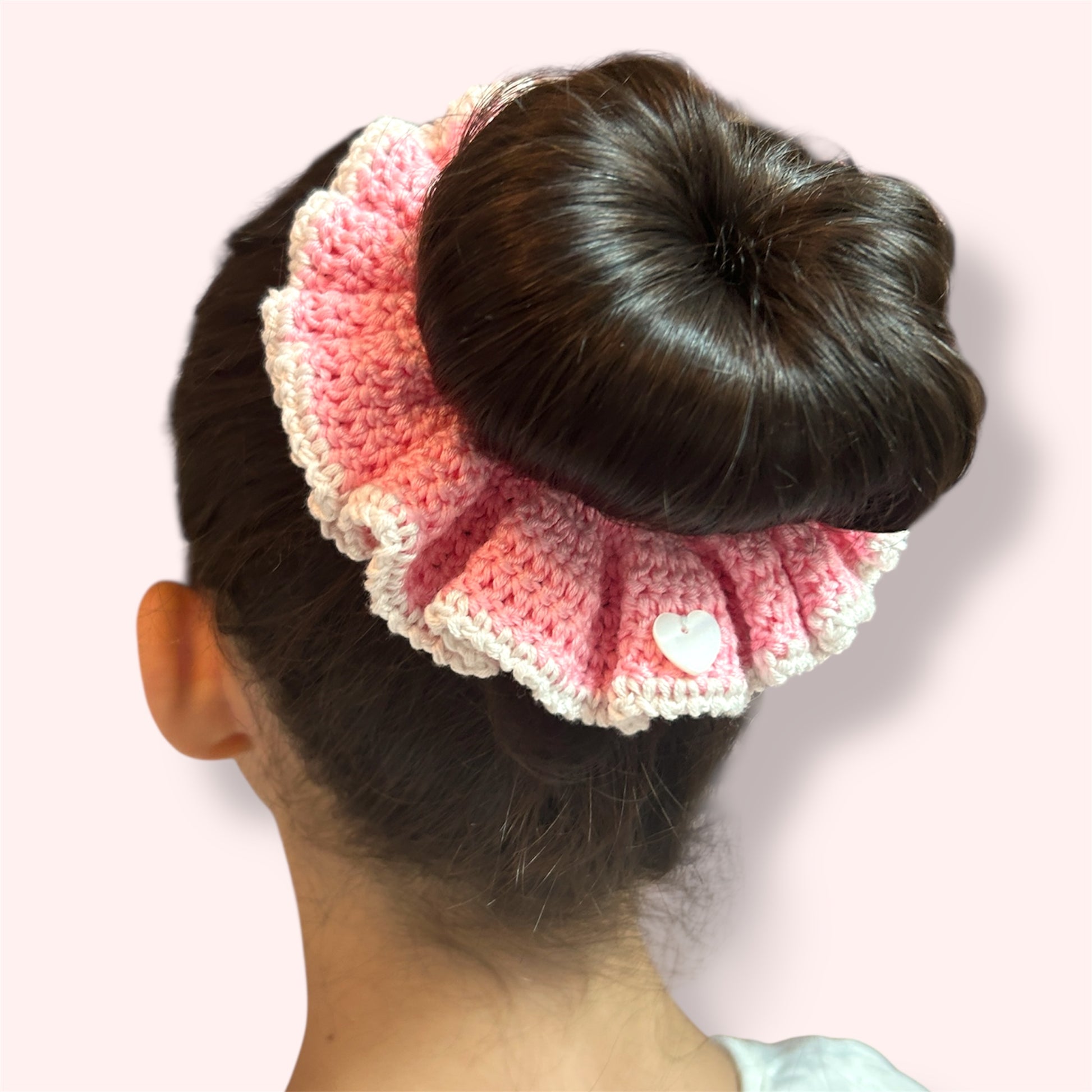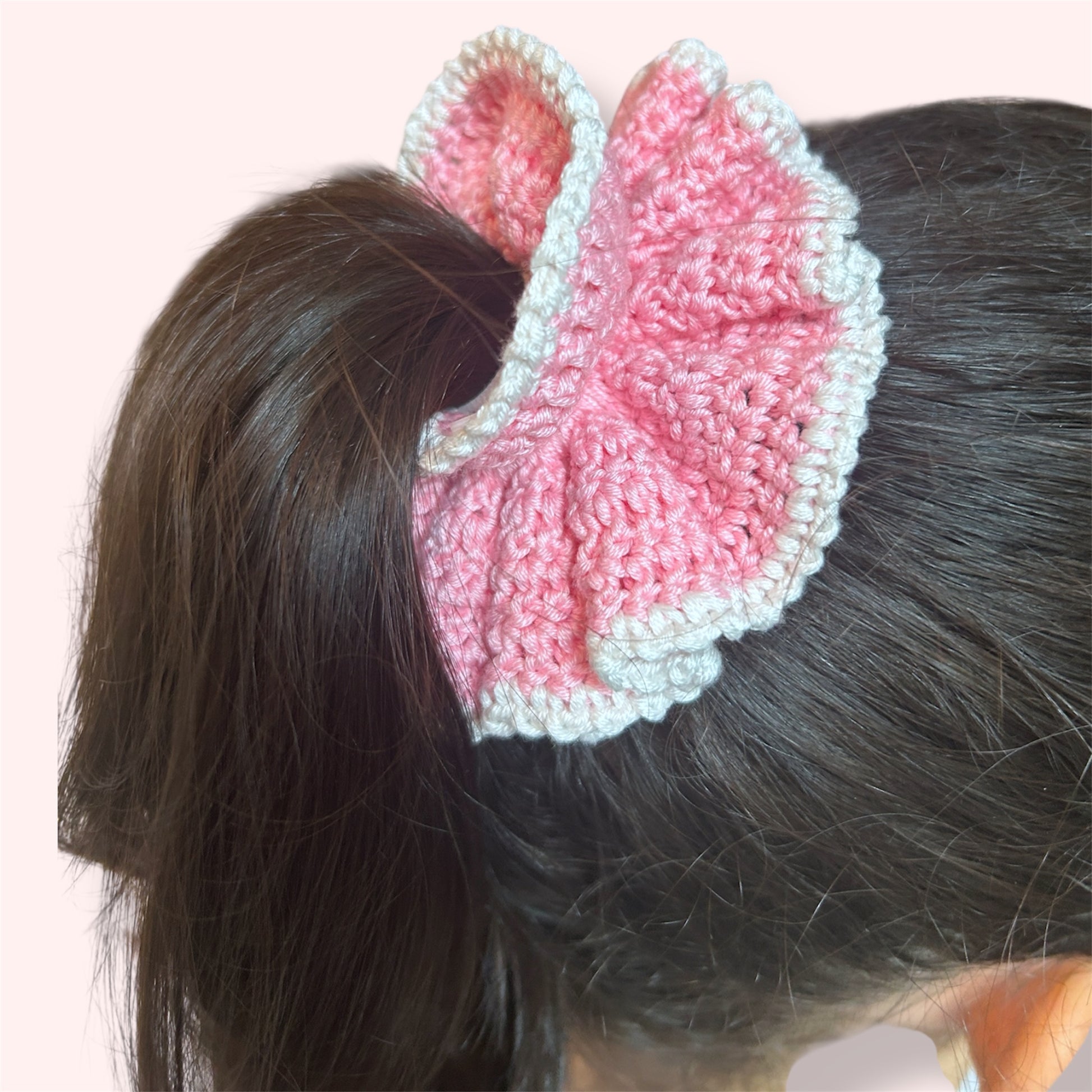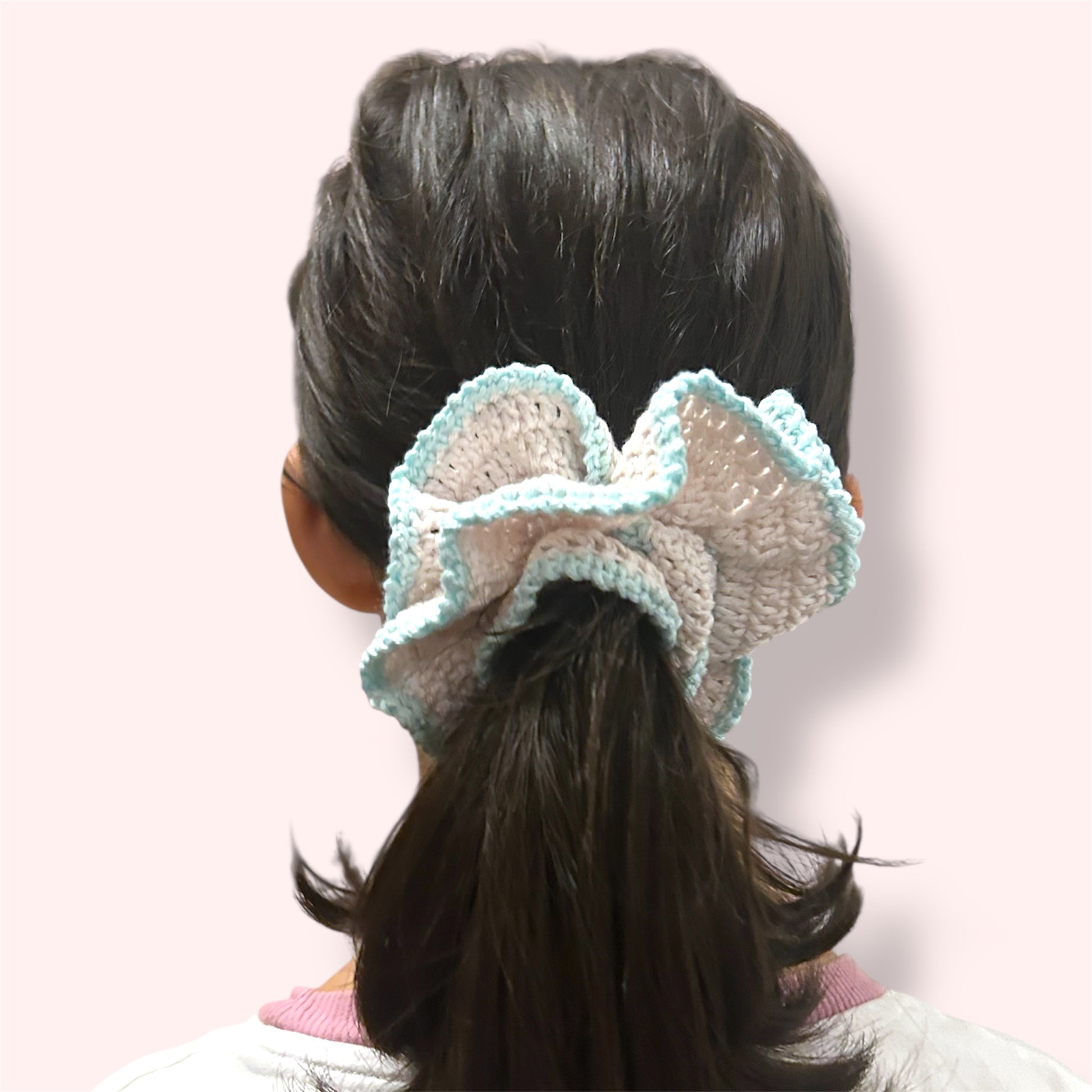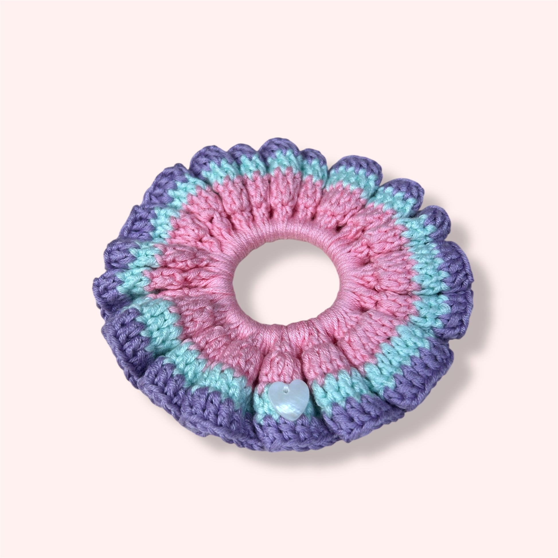 Un chouchou coloré au style rétro, entièrement crocheté à la main. Son style froufrou apporte du volume à toutes les coiffures.