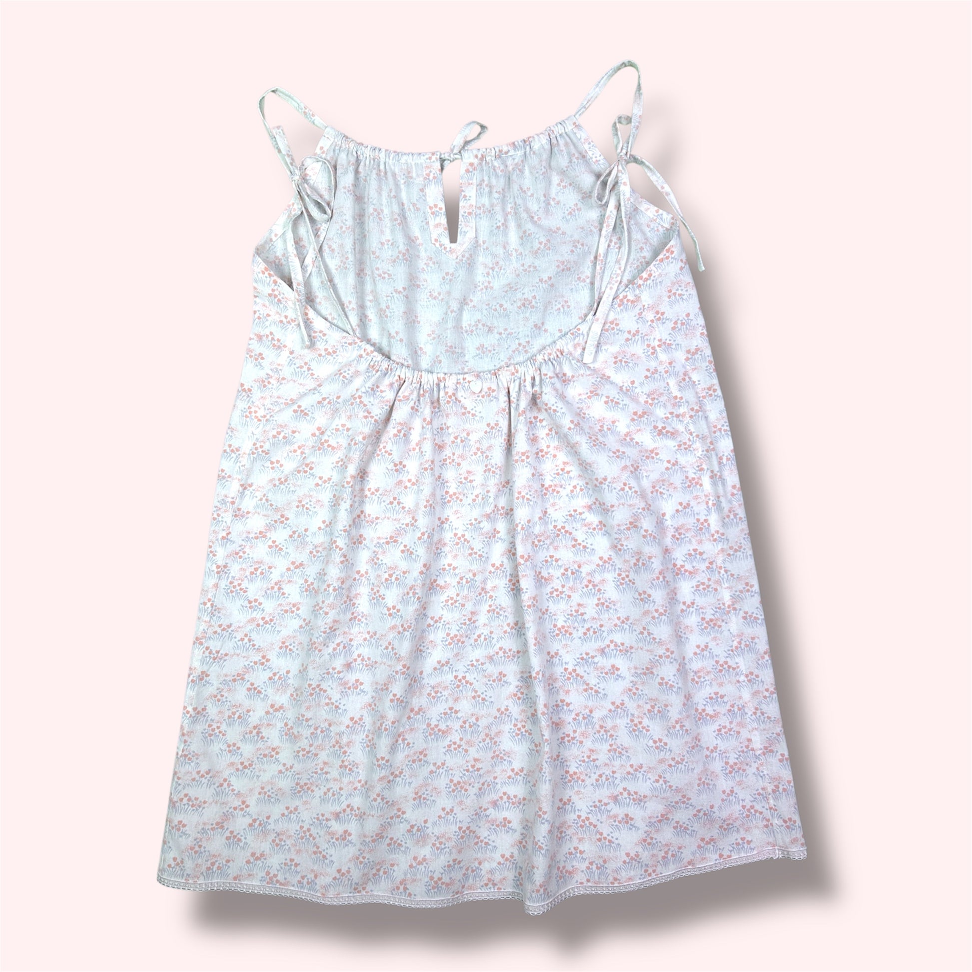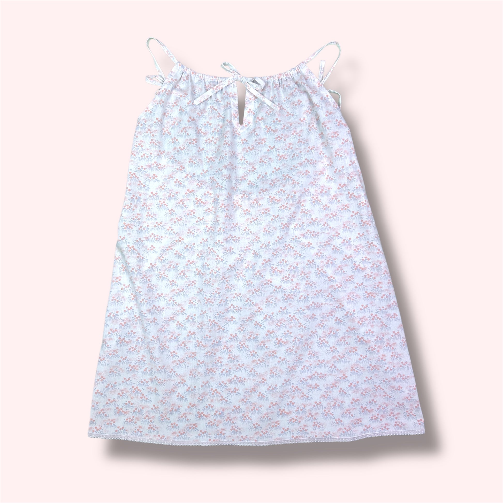 Jeannette est une nuisette légère au charme rétro et poétique, confectionnée avec soin dans un tissu upcyclé aux motifs délicats. Ses fines bretelles à nouer et son joli décolleté goutte d’eau à l’avant apportent une touche féminine tout en subtilité.